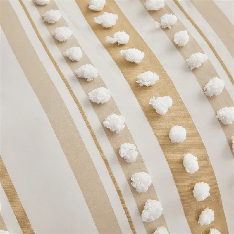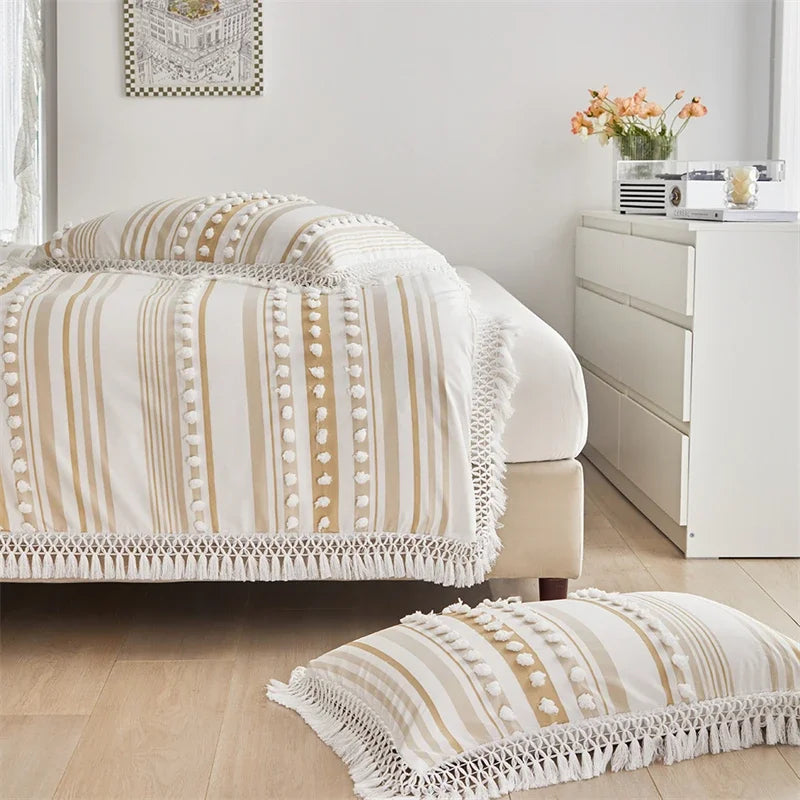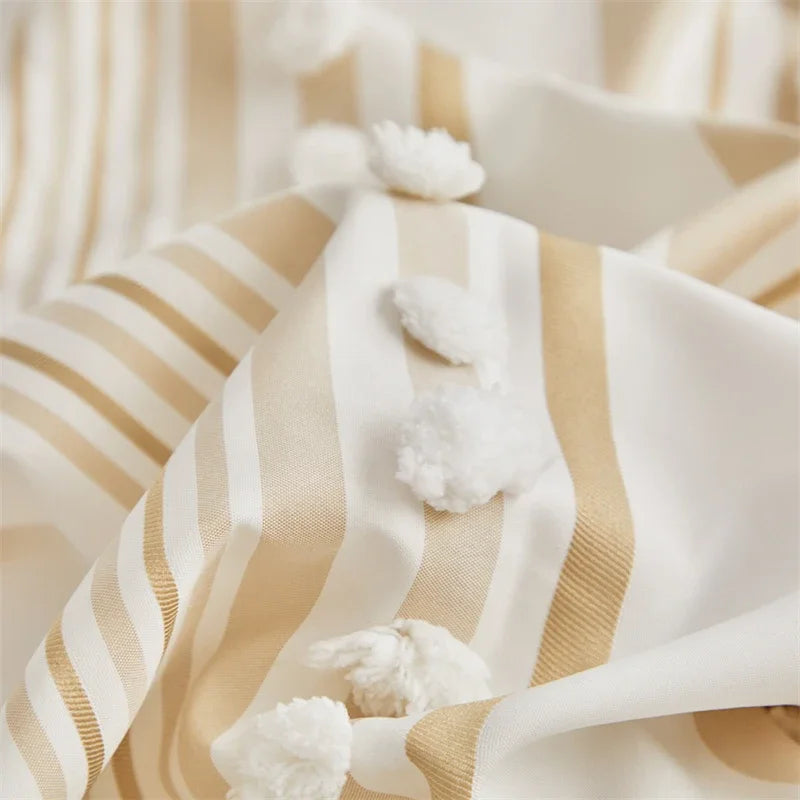 The Satori Stripe Duvet Set blends subtle pattern with serene texture, its soft cotton fabric detailed with minimalist stripes and finished with delicate tassels at the edges. Designed to feel both lightweight and breathable, it turns the bedroom into a sanctuary of calm.